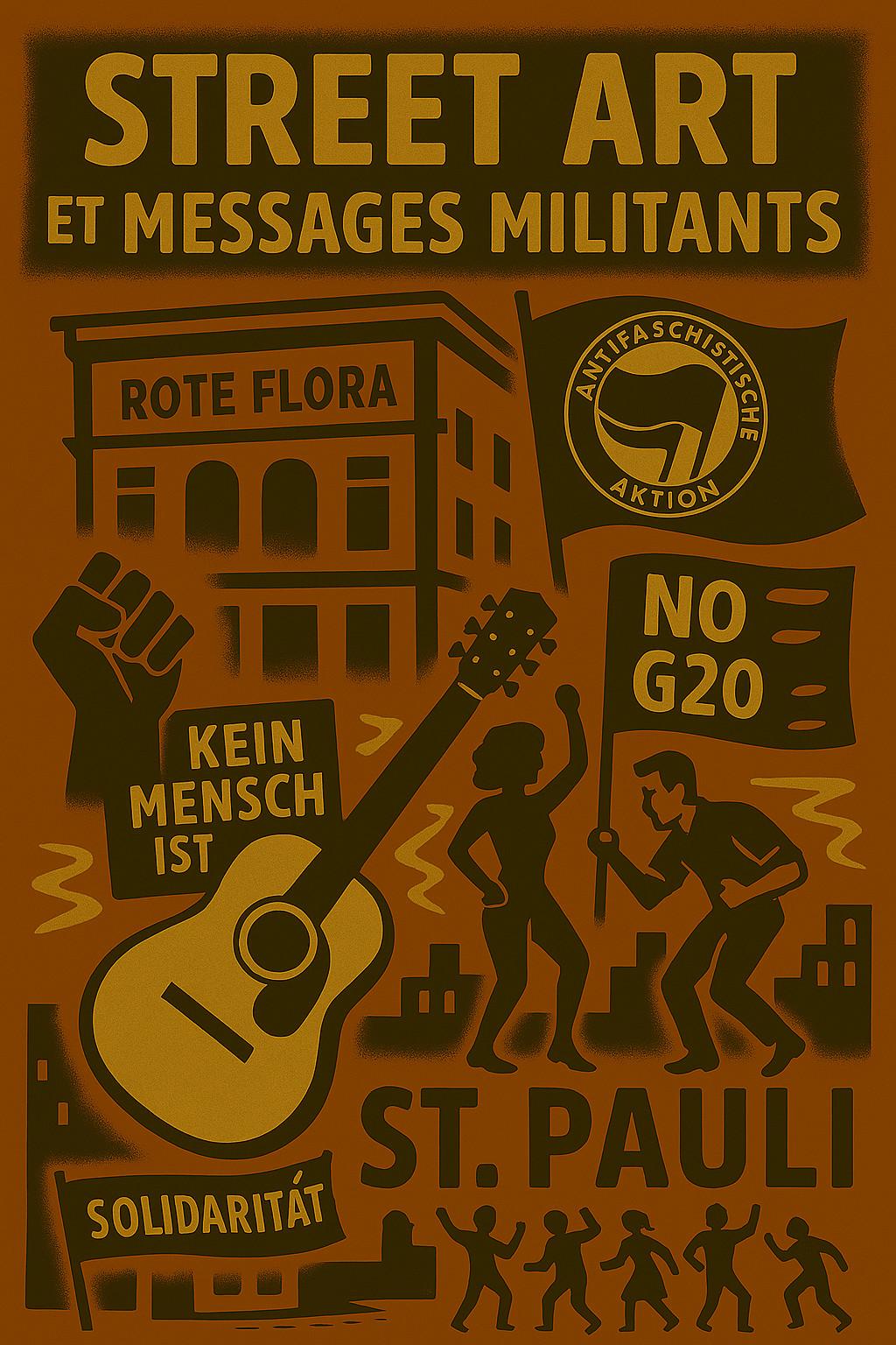 À St. Pauli, chaque mur peint est un écho des combats d’hier et d’aujourd’hui : antifascisme, accueil des réfugiés, refus de la spéculation. Le street art y est une arme douce, une parole collective posée en couleurs explosives sur les façades. Il transforme le quartier en fresque politique où l’art de rue devient bulletin de vote visuel pour un monde plus solidaire.